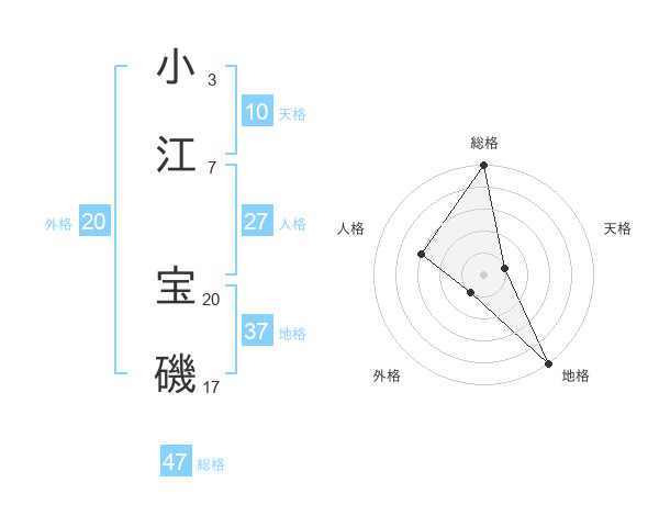 小江 宝磯さんの総格は47画の5点!