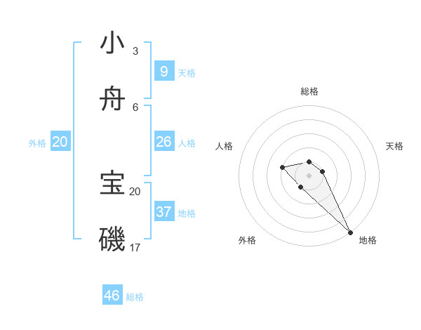 小舟 宝磯さんの総格は46画の1点!