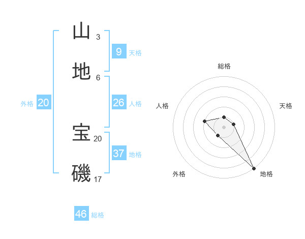 山地 宝磯さんの総格は46画の1点!