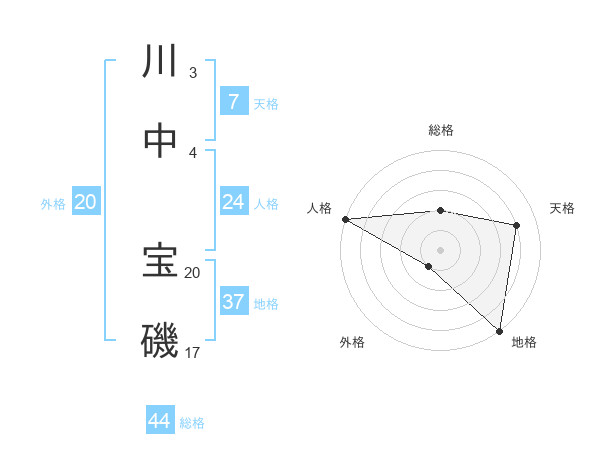 川中 宝磯さんの総格は44画の2点!