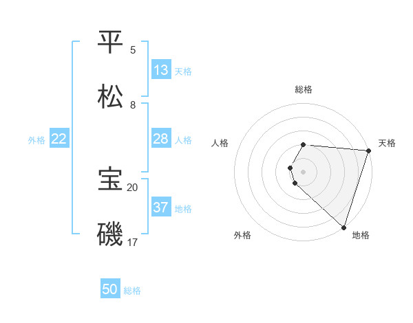 平松 宝磯さんの総格は50画の2点!