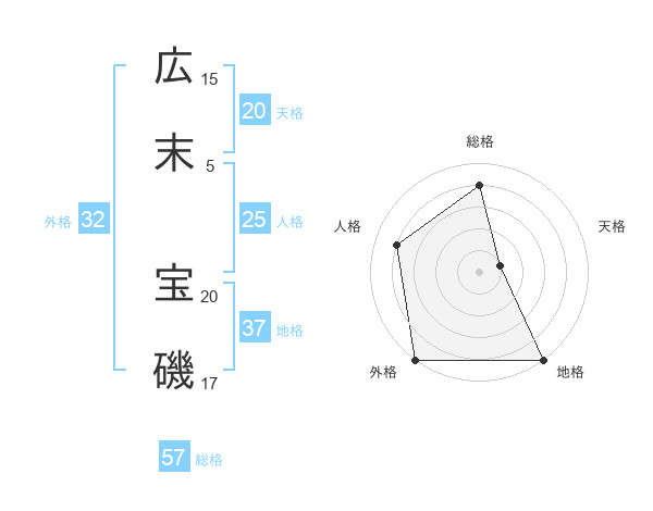 広末 宝磯さんの総格は57画の4点!