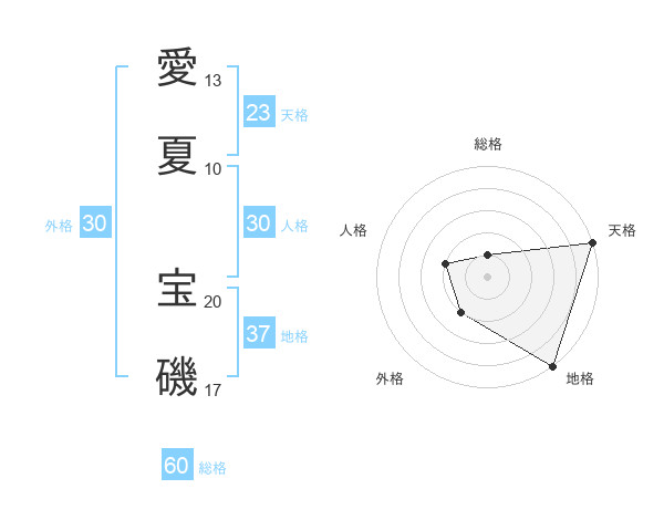 愛夏 宝磯さんの外格は30画の2点!
