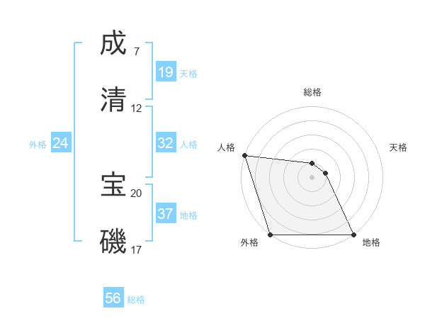 成清 宝磯さんを姓名の画数から五運を鑑定