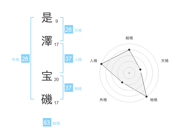 是澤 宝磯さんを姓名の画数から五運を鑑定