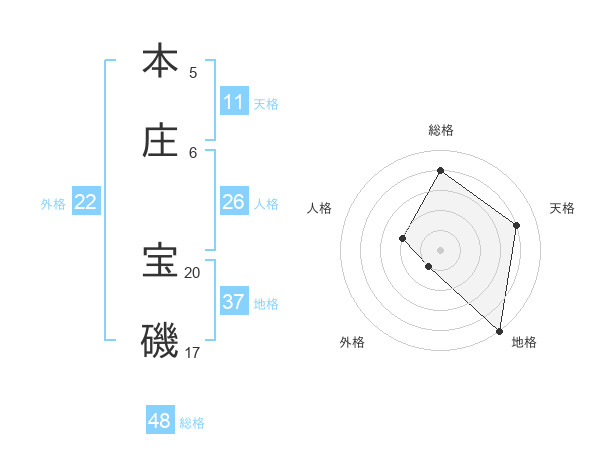 本庄 宝磯さんの地格は37画の5点!