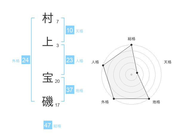 村上 宝磯さんの総格は47画の5点!