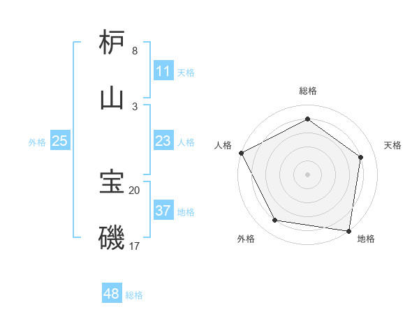 枦山 宝磯さんを姓名の画数から五運を鑑定