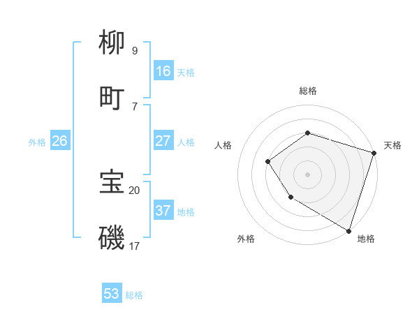 柳町 宝磯さんを姓名の画数から五運を鑑定
