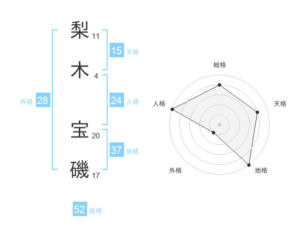 梨木 宝磯さんの総格は52画の4点!