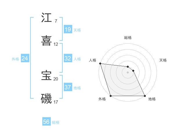 江喜 宝磯さんの総格は56画の1点!