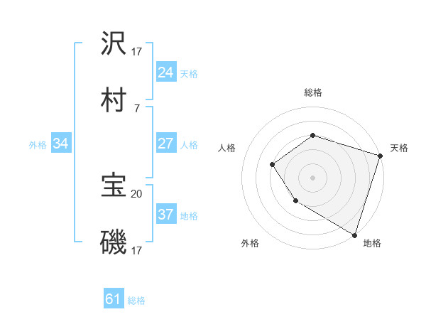 沢村 宝磯さんを姓名の画数から五運を鑑定