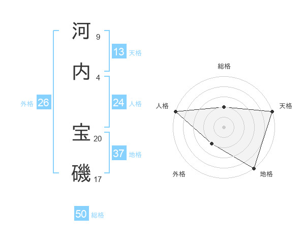 河内 宝磯さんの天格は13画の5点!