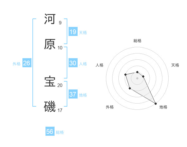 河原 宝磯さんの地格は37画の5点!