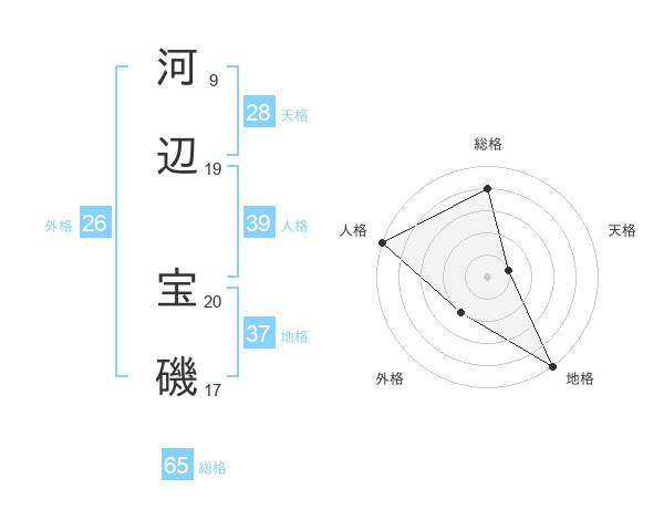 河辺 宝磯さんを姓名の画数から五運を鑑定
