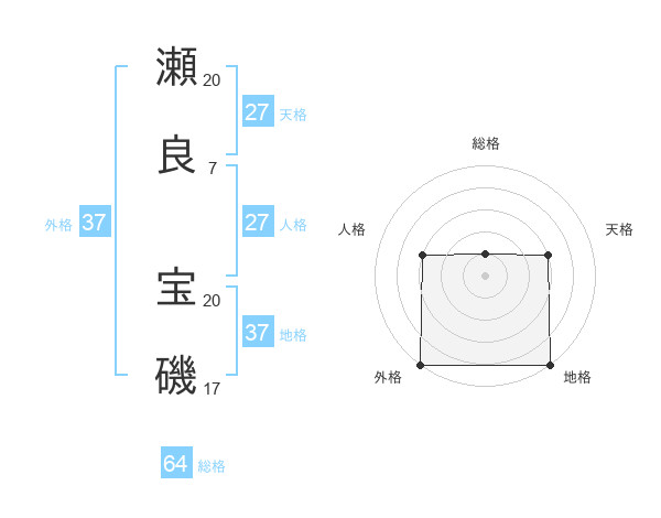 瀬良 宝磯さんを姓名の画数から五運を鑑定