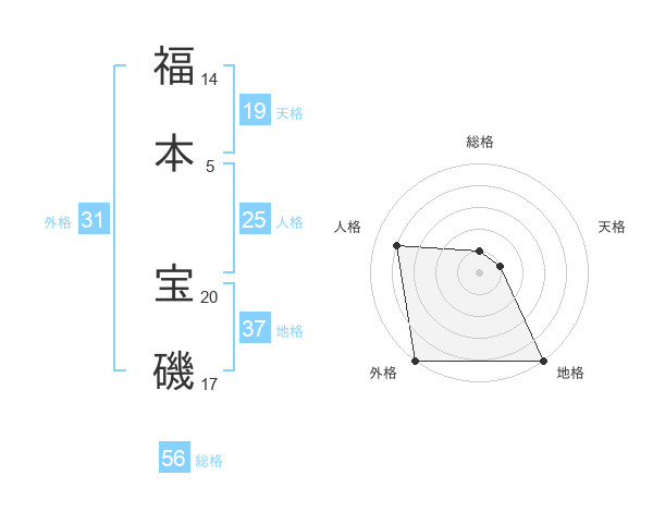 福本 宝磯さんの外格は31画の5点!