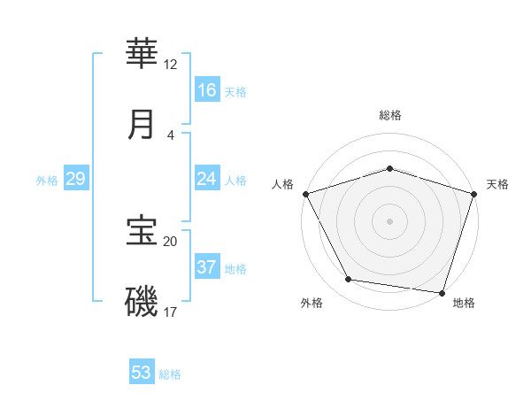 華月 宝磯さんの総格は53画の3点!