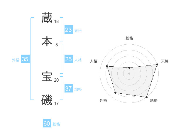 蔵本 宝磯さんを姓名の画数から五運を鑑定