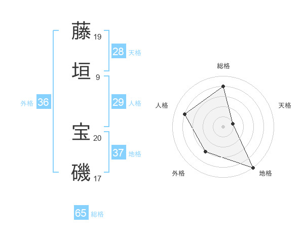 藤垣 宝磯さんの総格は65画の4点!