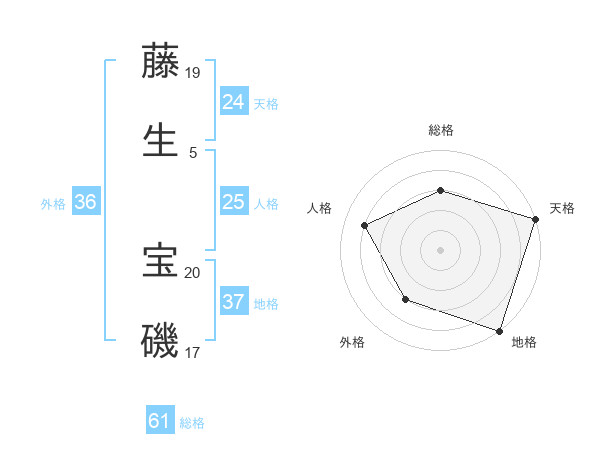 藤生 宝磯さんの総格は61画の3点!