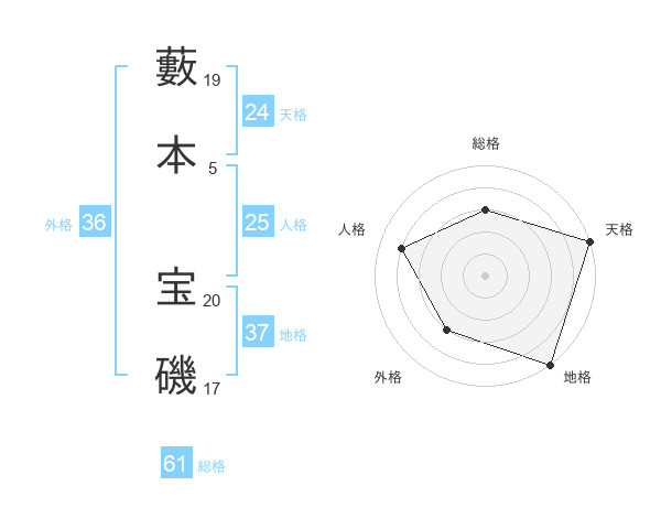 藪本 宝磯さんの総格は61画の3点!