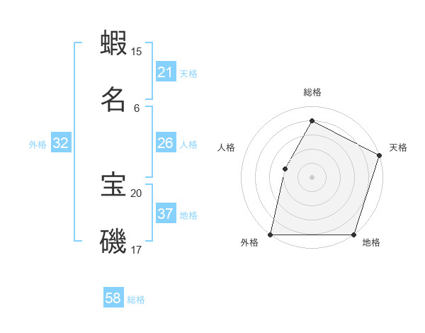 蝦名 宝磯さんを姓名の画数から五運を鑑定