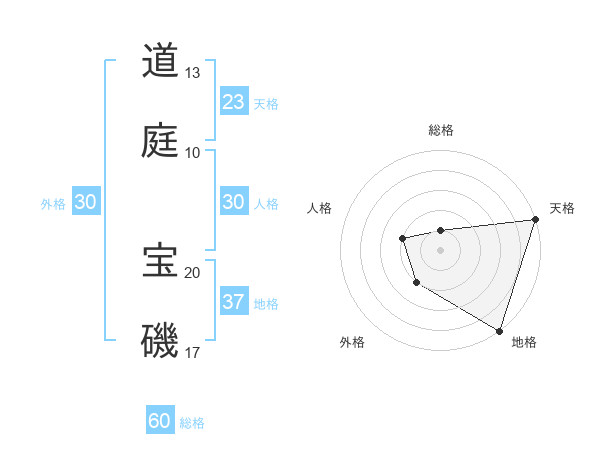 道庭 宝磯さんの天格は23画の5点!