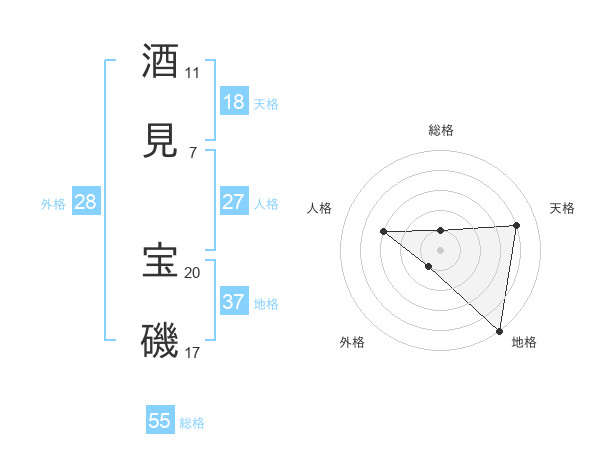 酒見 宝磯さんの総格は55画の1点!