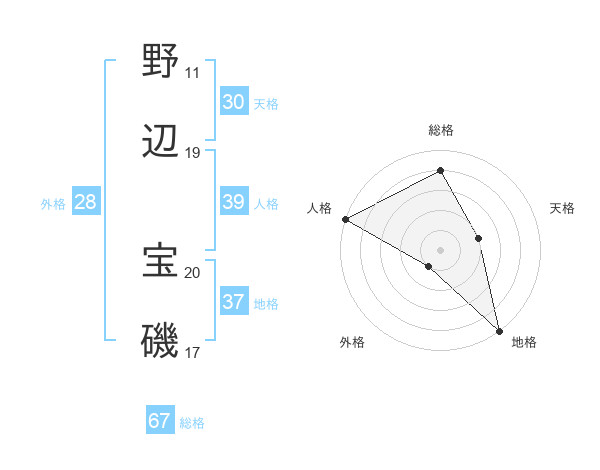 野辺 宝磯さんを姓名の画数から五運を鑑定