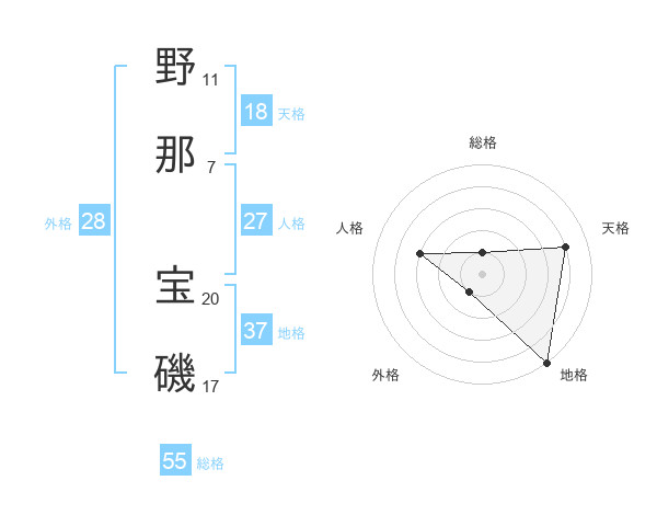 野那 宝磯さんの総格は55画の1点!