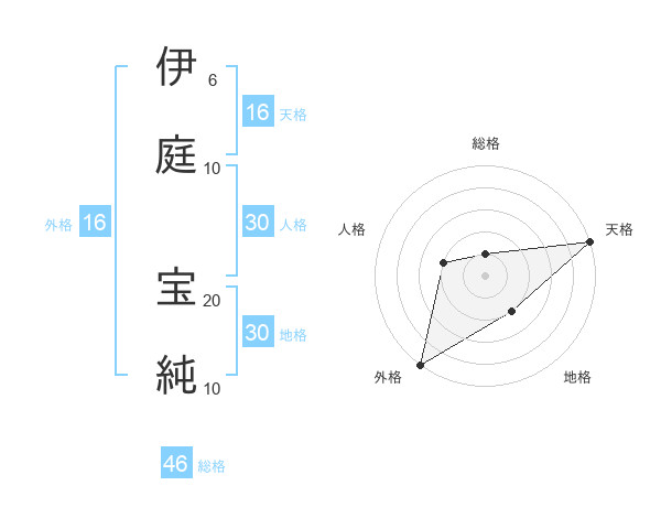 伊庭 宝純さんを姓名の画数から五運を鑑定