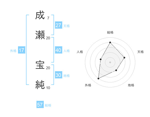 成瀬 宝純さんを姓名の画数から五運を鑑定