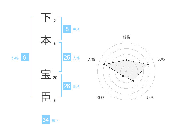 下本 宝臣さんを姓名の画数から五運を鑑定