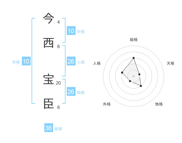 今西 宝臣さんを姓名の画数から五運を鑑定