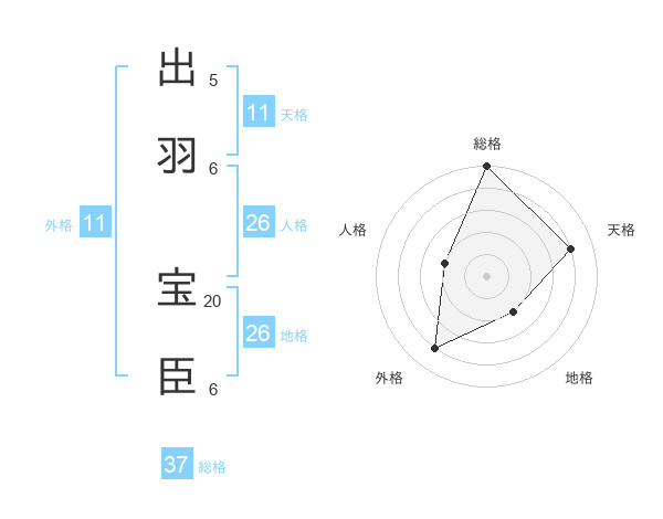 出羽 宝臣さんを姓名の画数から五運を鑑定