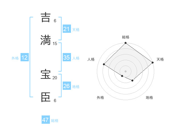吉満 宝臣さんの総格は47画の5点!