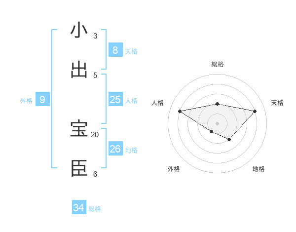 小出 宝臣さんを姓名の画数から五運を鑑定