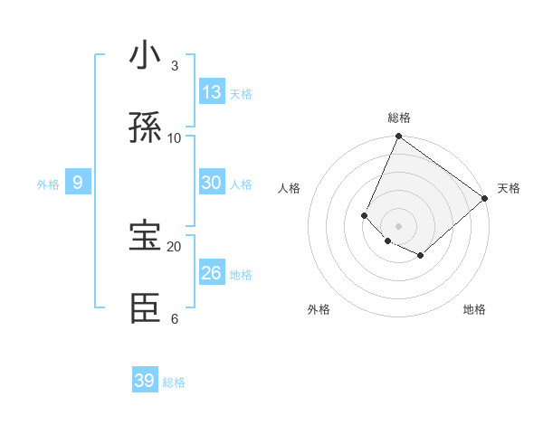 小孫 宝臣さんを姓名の画数から五運を鑑定