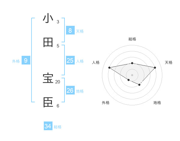 小田 宝臣さんの天格は8画の4点!