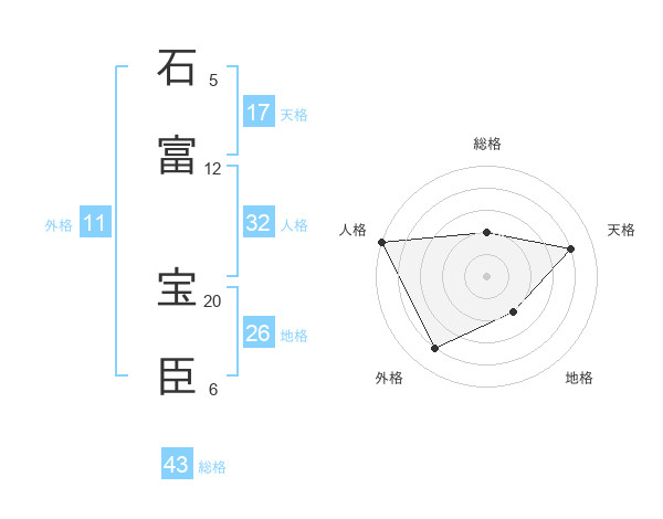 石富 宝臣さんを姓名の画数から五運を鑑定