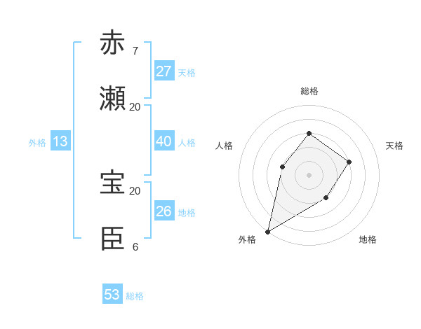 赤瀬 宝臣さんを姓名の画数から五運を鑑定