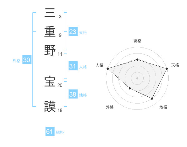 三重野 宝謨さんを姓名の画数から五運を鑑定