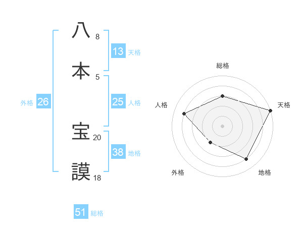 八本 宝謨さんを姓名の画数から五運を鑑定