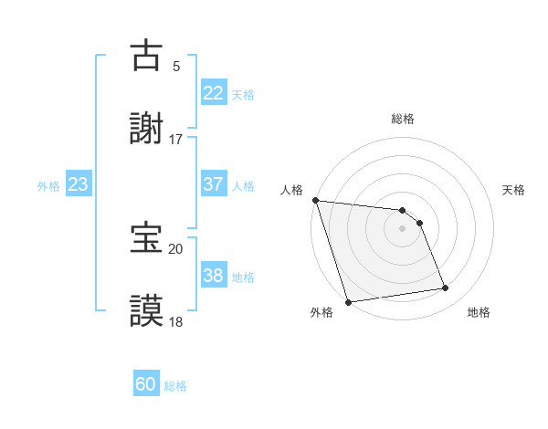 古謝 宝謨さんを姓名の画数から五運を鑑定