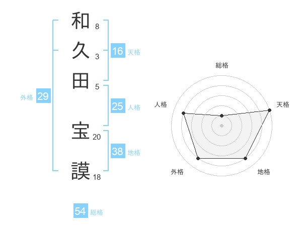 和久田 宝謨さんを姓名の画数から五運を鑑定