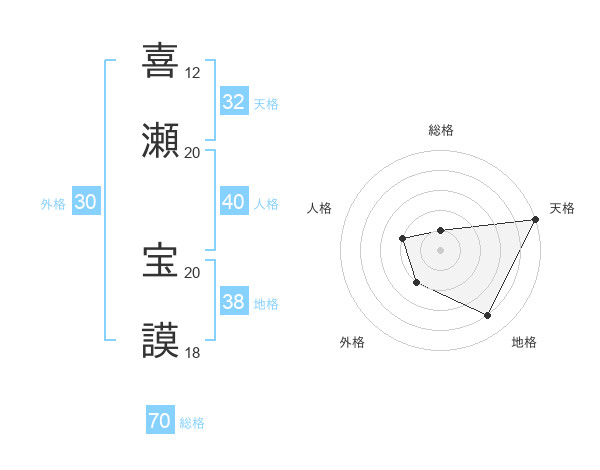 喜瀬 宝謨さんを姓名の画数から五運を鑑定