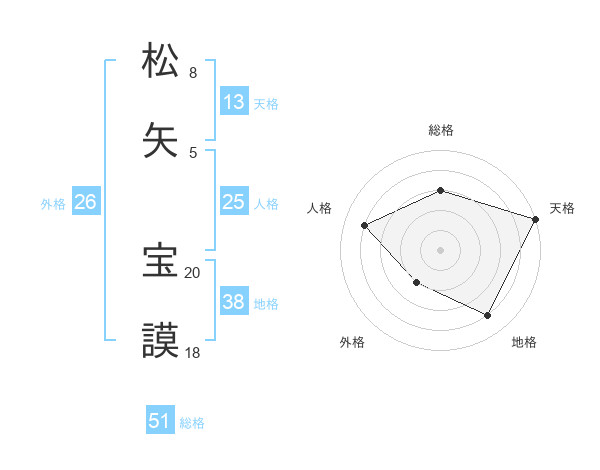 松矢 宝謨さんの総格は51画の3点!