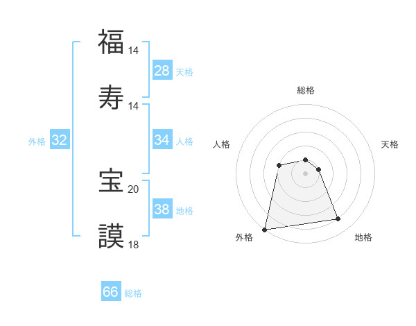 福寿 宝謨さんの総格は66画の1点!
