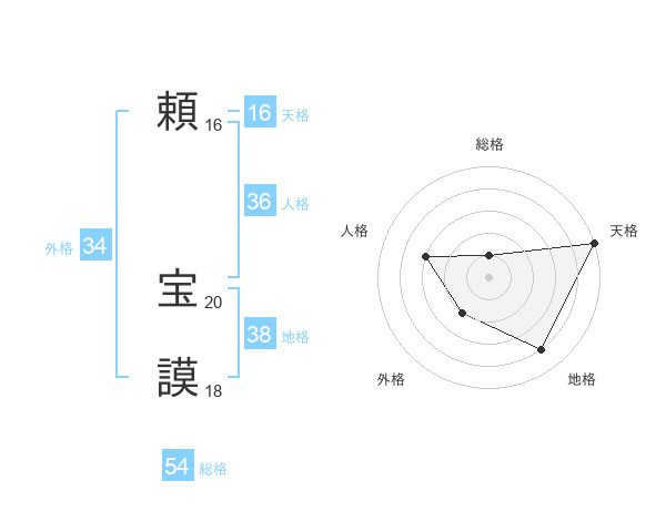 頼 宝謨さんの総格は54画の1点!